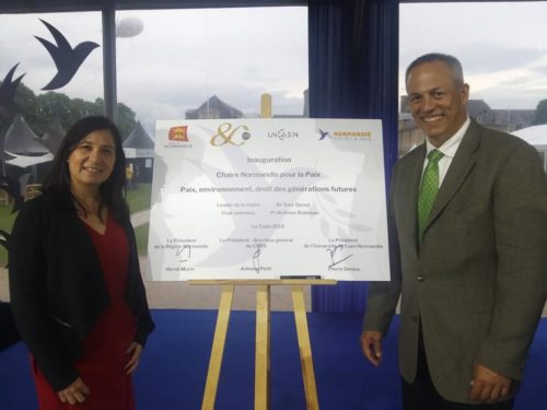 En présence de Hervé Morin, Président de la Région Normandie, Antoine Petit, Président Directeur général du CNRS et Pierre Denise, Président de l’université de Caen normandie. La chaire Normandie a été inaugurée dans le cadre du 2e Forum mondial pour la paix.
