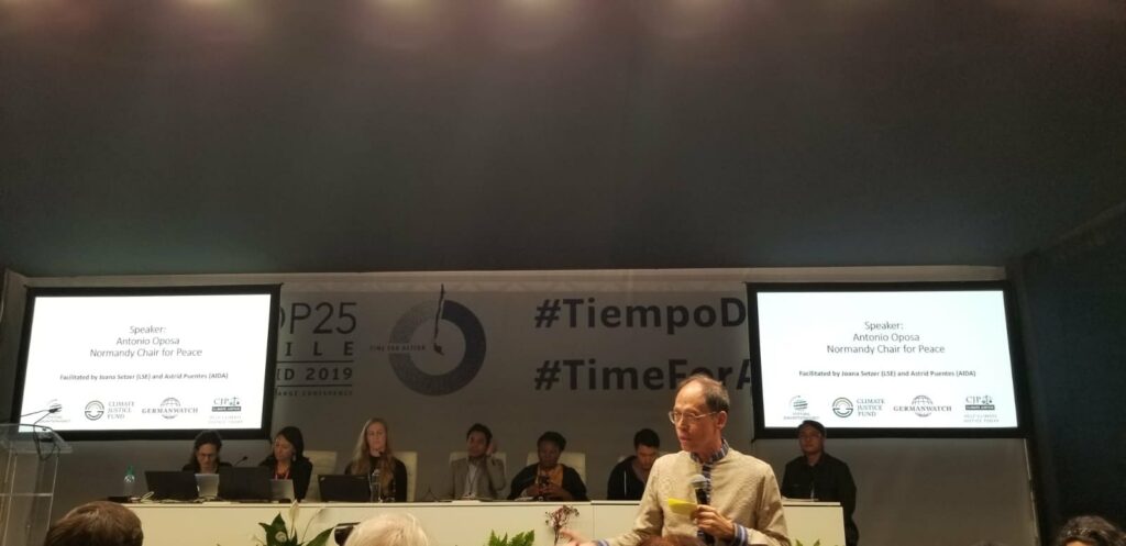 Lors de la conférence officielle de la COP 25, Tony OPOSA, leader de la Chaire Normandie pour la paix a prononcé l’ouverture d’une conférence dédiée à la justice climatique