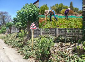 Dans un village au sud de Manille, un tronçon de route fleurit avec des cultures vivrières : kamote (patate douce), kamunggay (moringa sain), kapayas (papaye), etc. Aménagement paysager alimentaire.