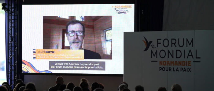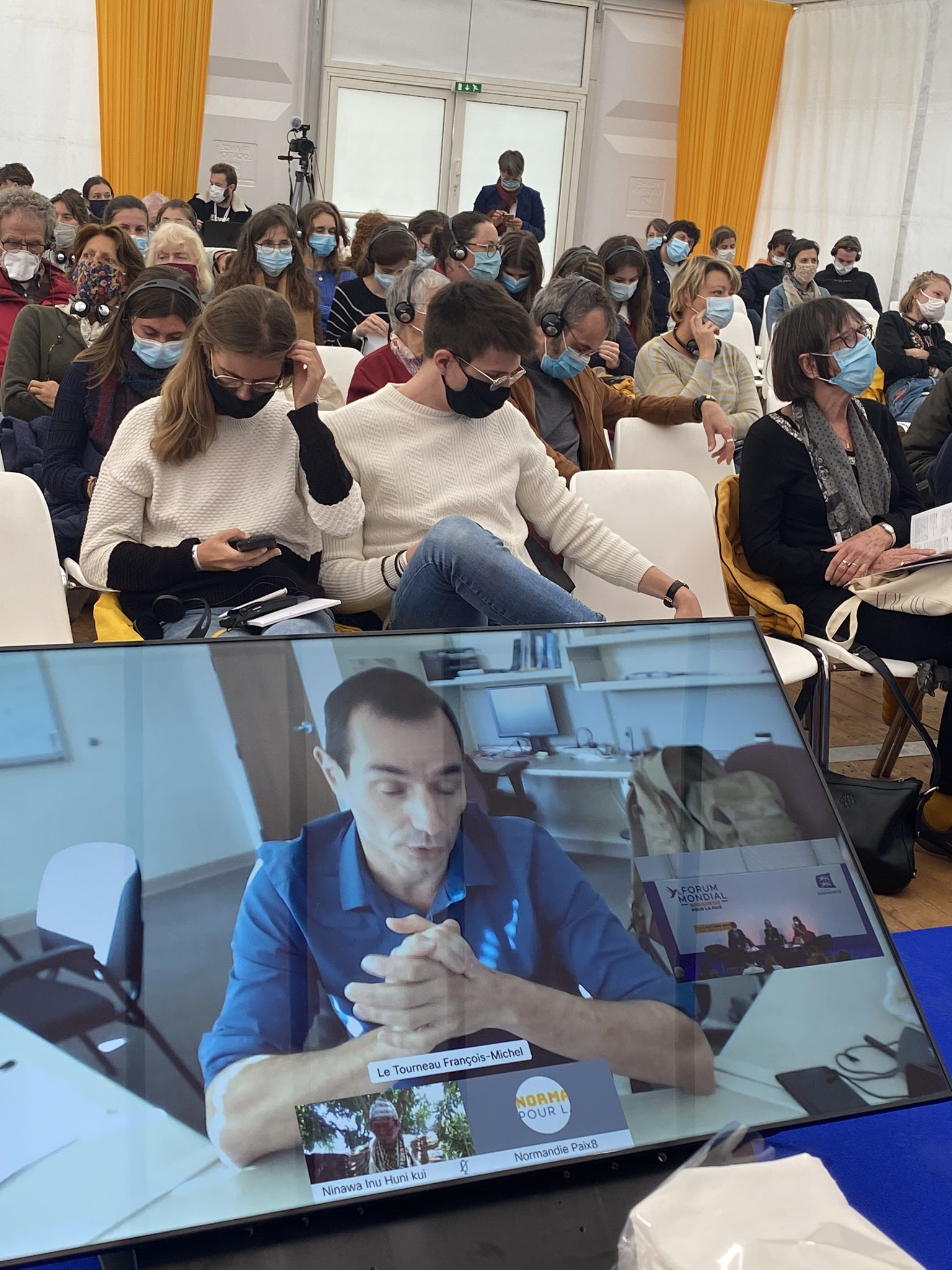 La Chaire Normandie pour la Paix a été présentée au public. Antonio Oposa, leader de la Chaire, a échangé avec des jeunes participants au programme Walk the Global Walk autour de l’ODD n°13 lors de la première conférence plénière : « Les raisons de la colère : Enjeux sociaux, démocratiques et environnementaux pour la paix ».
