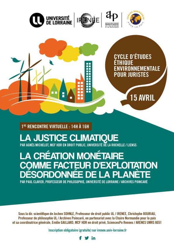 Sous la direction scientifique de Jochen SOHNLE, Professeur de droit public, UL / IRENEE ; Christophe BOURIAU, Professeur de philosophie, UL / Archives Poincaré et en partenariat avec la Chaire Normandie pour la paix et sa coordinatrice générale, Emilie GAILLARD, MCF HDR en droit privé, SciencesPo Rennes / ARENES UMRS 6051, Membre associé de l’Institut Demolombe, Caen (EA 967) et Co-directrice du Pôle Risques (MRSH-CNRS).