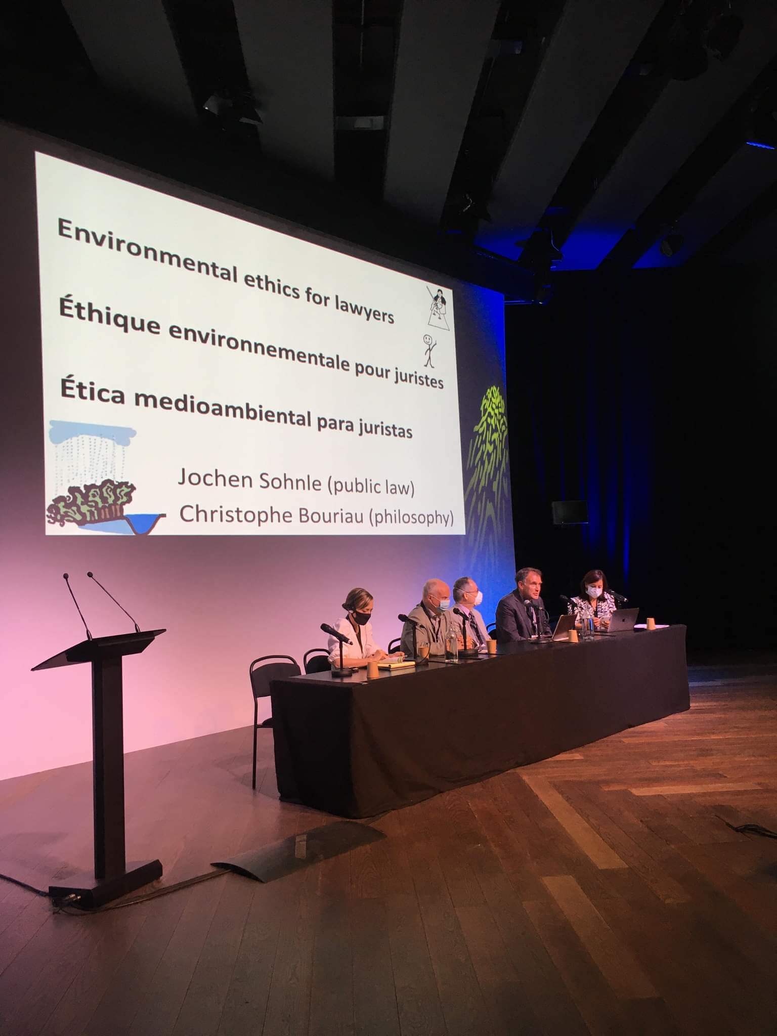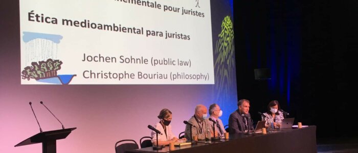 Emilie Gaillard a présenté sa thèse sur le droit des générations futures et sa mise en œuvre. Corinne Lepage a exposé sa Déclaration universelle des droits de l’humanité reposant sur les principes de responsabilité, de pérennité du vivant, de dignité humaine et d’équité intergénérationnelle. Ensuite, James May a retracé l’histoire de la reconnaissance des droits de la nature au niveau local, national et international. Pour finir, Stéphane Pessina a dévoilé son approche juridique mésologique des droits de la nature insistant sur la nécessité de changer de paradigme.