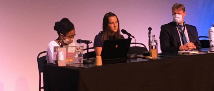 L’après-midi, les premiers panélistes ont abordé la thématique d’une réponse aux crises “existentielles” de la Terre. Justice Michael Wilson a insisté sur les intérêts de créer une commission sur la crise climatique et la motion 003 associée. Ensuite, Prof. Elisa Scotti du Réseau mondial de lutte contre les pandémies (GPN) est revenue sur la nécessité de préserver la biodiversité pour éviter la propagation et transmission des maladies infectieuses des animaux aux êtres humains (zoonoses). Christopher Sudol et Prof. David Forman ont ajouté qu’il était également essentiel de préserver les savoirs faire et connaissances des peuples autochtones et de reconnaître enfin leur existence dans l’Histoire. Cela suppose plus que jamais de renoncer à la doctrine de la découverte. Pour finir, la crise de l’énergie et le programme de l’UICN ont été abordés par John Notoris, Carly Hopkings et Prof. Richard L. Ottinger.