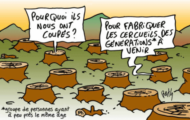 «Lorsqu’on parle de déforestation, il s’agit plutôt d’un crime contre les générations futures : en effet, la forêt permet aux êtres humains de respirer. La déforestation met donc en danger les humains dans les années à venir.»