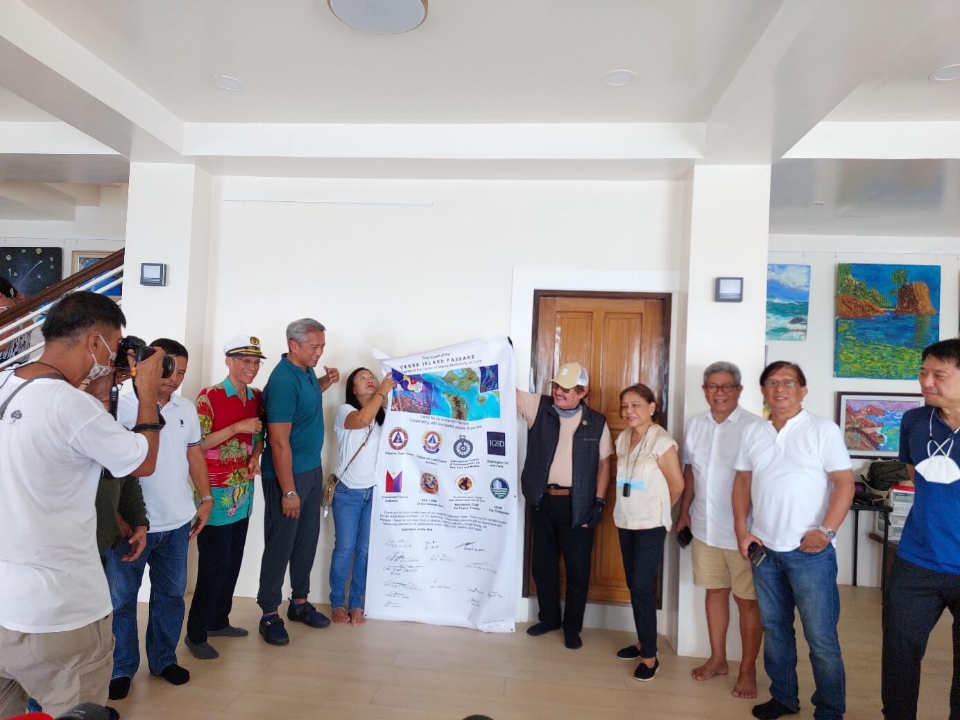 Le gouverneur Remulla, le membre du Congrès Edward Hagedorn, la sénatrice Cynthia Villar, le maire Nilo Villanueva, ainsi que des citoyens concernés, brandissent la pancarte qu’ils ont signée. Ensemble, ils ont rêvé de la restauration de la richesse marine du passage de l’île Verde. L’épicentre de la biodiversité marine sur Terre. La pancarte a été apposée sur la côte du passage de l’île Verde, devant la plage du nouveau Garden by the Sea.