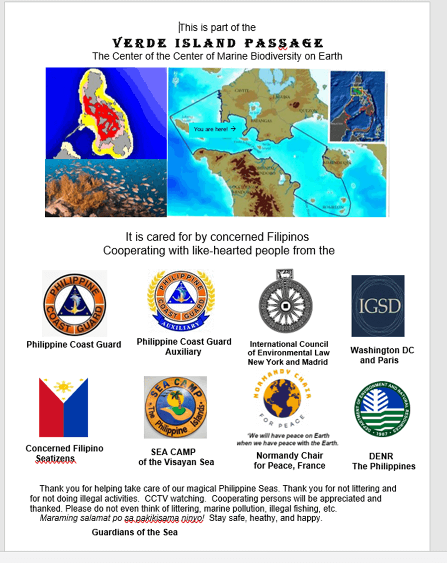 Le 5 juin, Journée mondiale de l’environnement des Nations unies, c’est une journée qui marque également le troisième anniversaire de la Chaire d’excellence Normandie pour la Paix. Tony Oposa, leader de la Chaire, à organisé une réunion importante dans sa Maison Dancing Dolphin House. Cette fois-ci, il s’agissait d’une réunion de citoyens concernés et de compagnons de longue date qui prennent soin de la Terre. Certains d’entre eux occupent maintenant des postes de haut rang. Ensemble, ils se sont engagés à aider à déclarer le passage de l’île Verde comme une aire marine nationale protégée.
