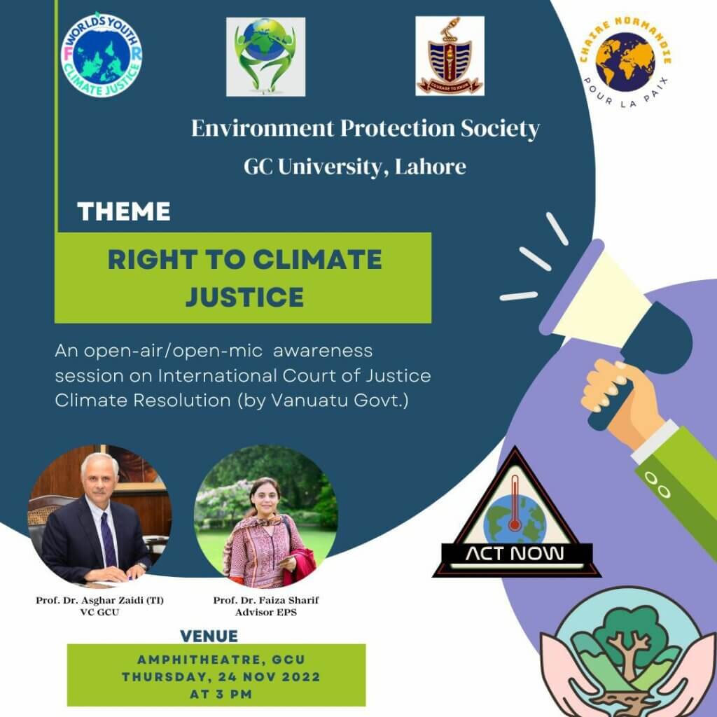 Lire l’article : Un débat à micro ouvert s’est tenu à la GCU sur la résolution de la CIJ sur la justice climatique à l’Université GC, Lahore au Pakistan.